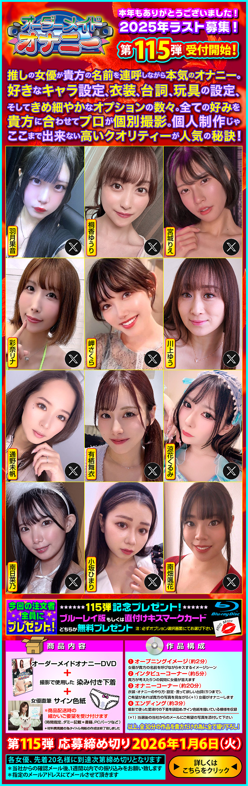 - 各女優、先着20名様に到達次第締め切りとなります。